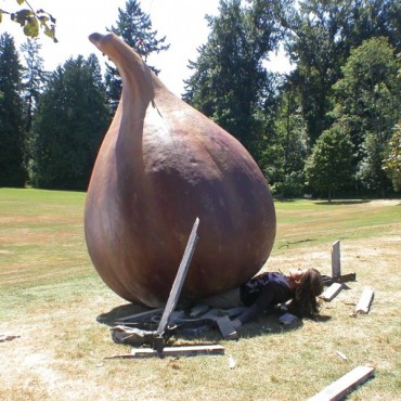 Yet another fun but challenging job. This time, we were trying to figure out a way to build a giant fig to drop ‘onto’ the actors. We decided that the easiest way to do this would be to build a giant foam fig, and use a mannequin for the frames involving impact. I built a model of the shape and texture for the client to approve and then had it scanned and recreated at 8’ tall instead.