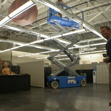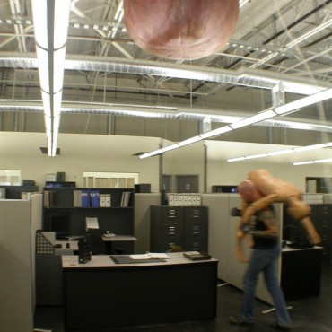 Nobody could really say what would happen when dropping a giant foam fig onto breakaway furniture and office supplies, so the rehearsal was exciting for all involved. Check out the finished spots below, as well as some photos from throughout the process.